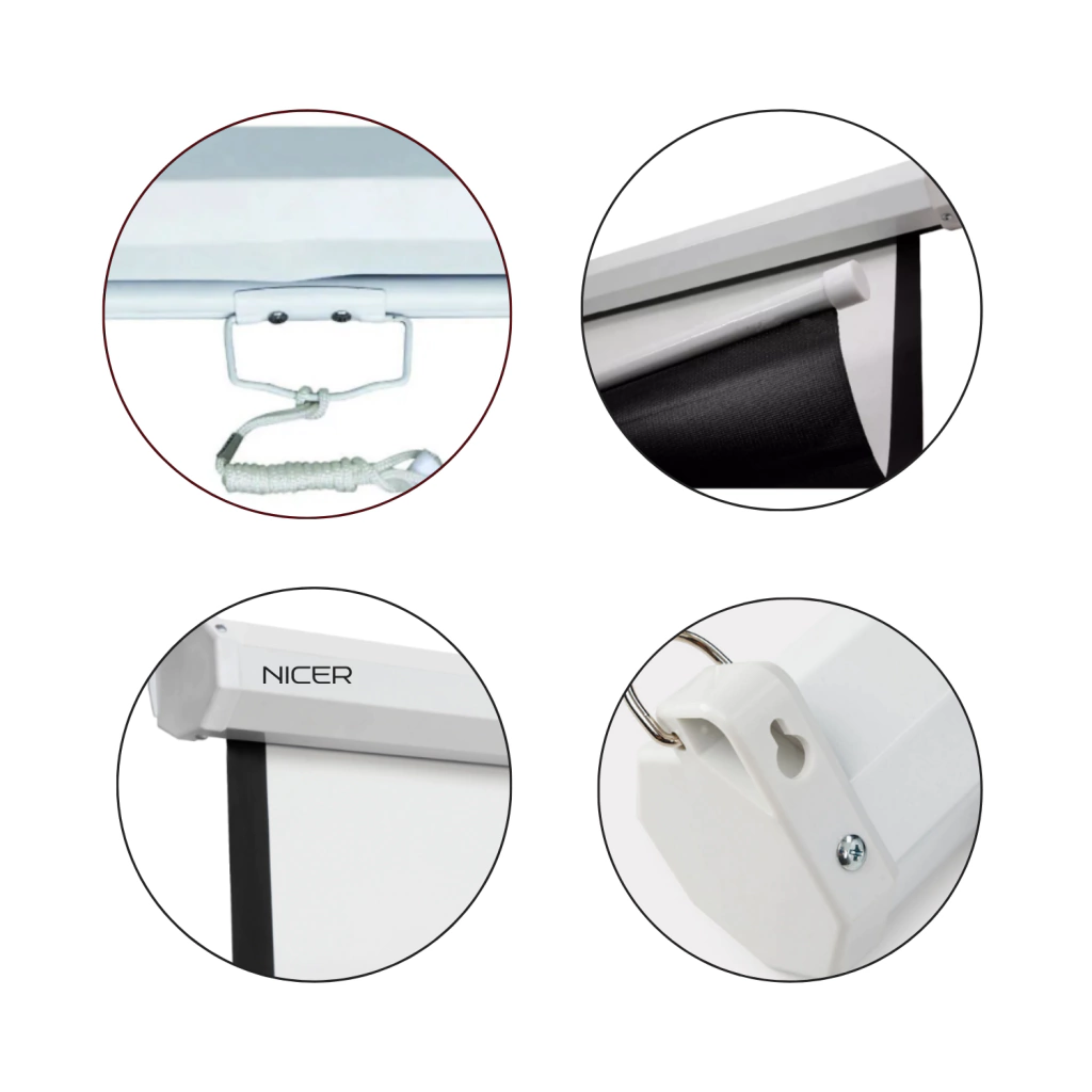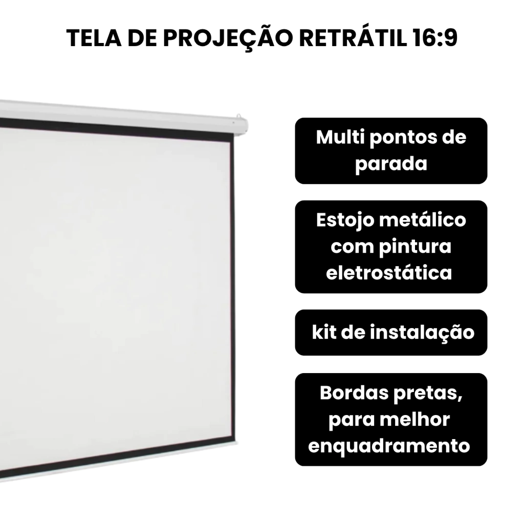 A tela retrátil manual NICER é ideal para quem busca praticidade, resistência e qualidade de imagem. Com formato widescreen 16:9, superfície Matte White e estrutura metálica reforçada, ela é perfeita para home theater, salas, jogos, igrejas, apresentações e treinamentos.